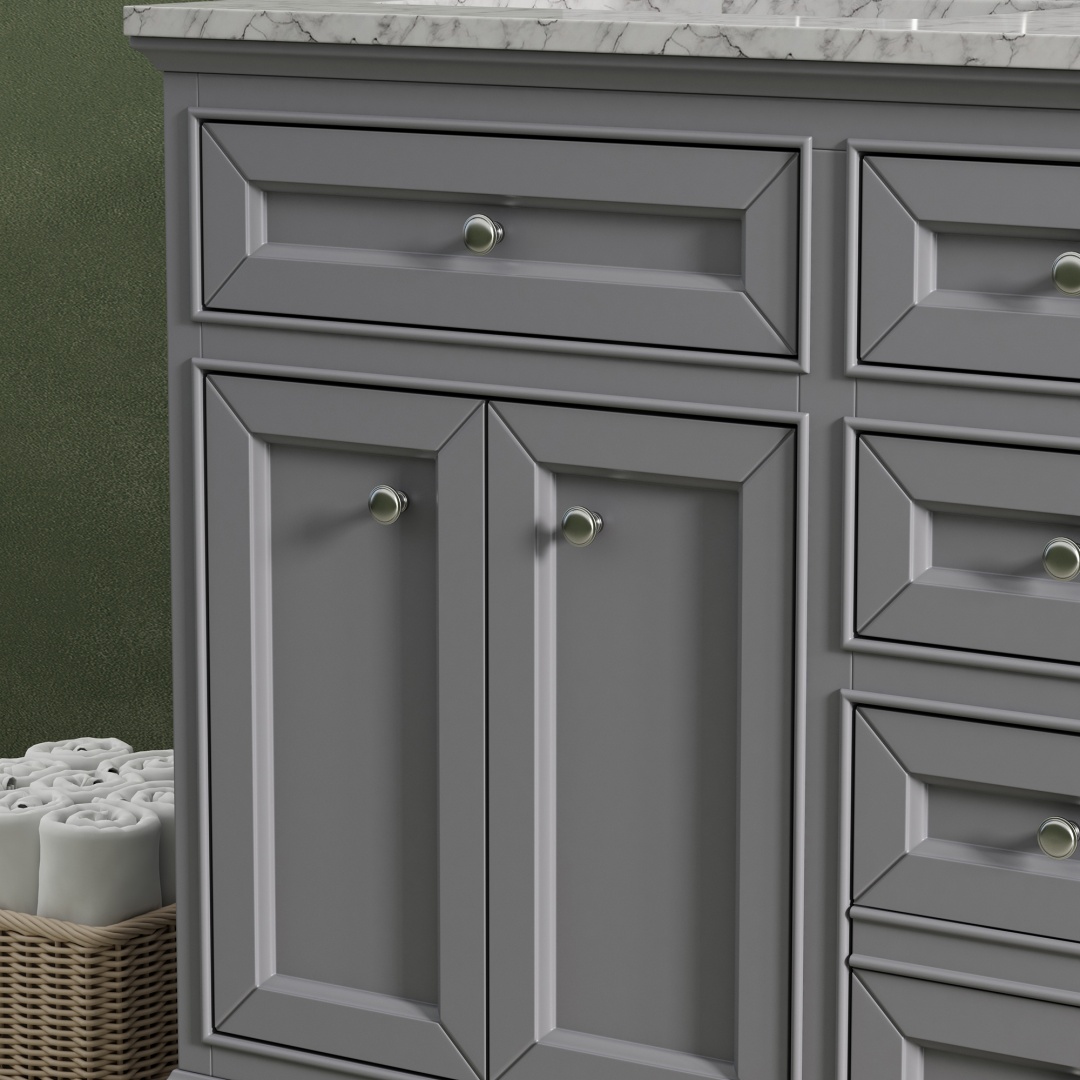 Make a statement in your bathroom with this 55-inch Bathroom Vanity, where classic elegance meets modern design. Finished in a crisp white and topped with a stunning Carrara marble countertop, this vanity instantly elevates your space with a clean, sophisticated look.